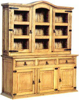 Most rustic styles are simple without a lot of ornamentation or fancy hardware. The pulls and knobs may be made of wood or iron, although colored glass or porcelain pulls also work well on rustic pieces. The top section of rustic china cabinets is often in the hutch style where the top of the buffet piece is left open and side and back boards raise the display shelves to allow work or serving space on the buffet. Rustic pieces often have less display area than more formal styles.