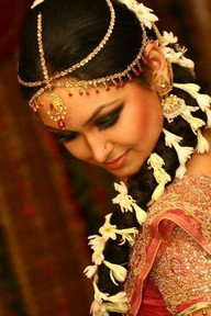 Hairstyles chosen by traditional Indian brides are usually simple to accommodate the elaborate jewelry worn on the head which may include combs or barrettes as well as the tikka. Often the styles are a top knot, a bun at the nape of the neck or a bun worn on the side of the head over the ear. In the southern regions of the country, braided hairstyles are favored. Veils are not usually worn by brides in these areas and the hair style is more easily viewed.