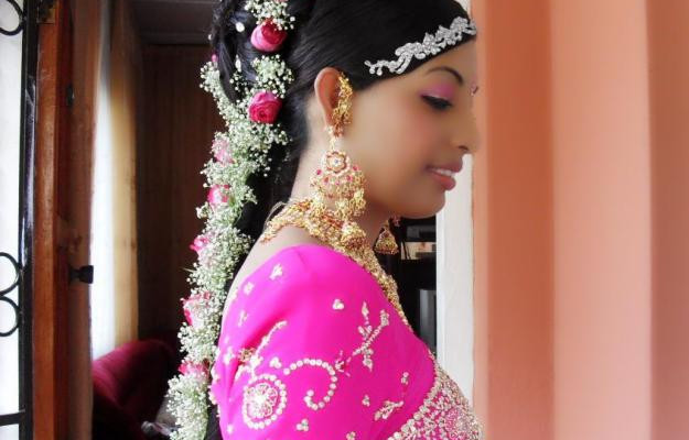 Indian bridal makeup also serves to hide the blemishes on the skin such as dark circles around the eyes or brown spots on the faces. Acne and other skin disorders may be heightened with the use of bridal makeup. However, special medicated makeup is used for skin problems. Bridal makeup sweeps extravagant colors on cheeks, lips and eye lids to give the bride the astonishing countenance of a celebrity in her regal sari.