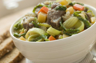 Nowadays you can put in leeks and celery or parsnips and turnips according to your liking. Corned beef that’s cooked in its own juices is often served with cabbage. Add cabbage to the stew towards the end of the cooking process.