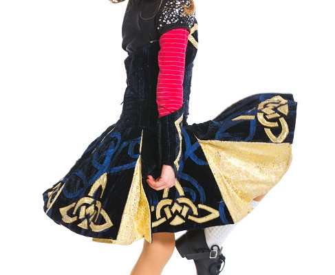 The dresses worn by girls in Irish dance schools or commission schools are quite distinctive with skirts that are stiff and pleated. The elaborately embroidered skirts are teamed with a simple blouse and the whole Irish dance dress set will be in the colors of the school. The dancing school will normally have a specific dance dress, which all its female dancers will wear.