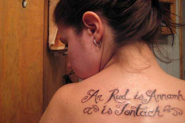 The ancient Irish were Celts who had migrated to the Irish isles from Central Europe nearly two thousand years before the coming of Christianity to Ireland. Their unique language was called Gaelic, which still survives to this day and is widely spoken by the Irish. The Gaelic language was written using a special alphabet called the ‘Celtic Tree Alphabet’ which comprised of letters that signified trees found in abundance on Irish soil such as the oak tree and the fir tree. The Ogham script, which was the lettering of old Gaelic, is the basis of Irish Gaelic tattoos of alphabet symbols.