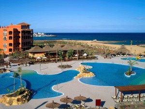 The Sheraton Fuerteventura Beach, Golf and Spa Resort is located close to the beach in the resort of Caleta de Fuste in Fuerteventura. This is a 5 star resort hotel also closely located to the Fuerteventura Golf Resort, and also conveniently located just a ten minute drive from the airport. It is the ideal place for a beach and golf holiday.
