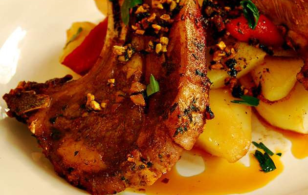 To prepare this deliciously simple recipe you will need 3/4 kg of clean lamb chops, five tbsp. of extra virgin olive oil along with 1 onion and 3 cloves of garlic.