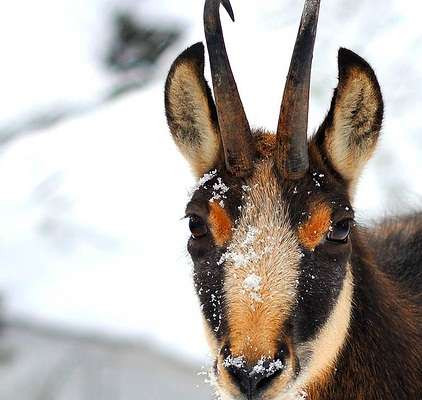 The Chamois is a cousin of the goat. At maturity the Chamois stands about 4.5 feet tall and weighs about 110 pounds. The horns on its’ head curve into a hook at the end. It has two white strips running down its’ face and a 6 inch mane (or beard) running down its’ back. This animal in Switzerland is a popular game animal. Locals like to eat the meat of the Chamois, use its’ hide as leather, and use the mane to decorate hats and clothing. The Chamois has become endangered due to over hunting. The Swiss government now has limited how many of these animals can be killed by hunters.