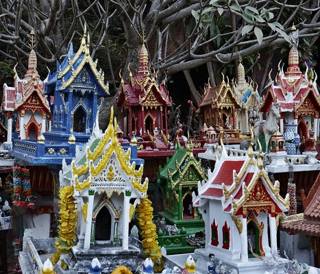 One of the first things a foreign visitor to Thailand notices soon after arriving in the country are the spirit houses which are present at the front of practically every house and business. On this page we explain the purpose of these Thai spirit houses and some of their common features.