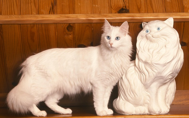 Originally from the Central Ankara region of Turkey, Turkish Angora cats are fine boned creatures with a startling and exquisite silky white coat. This distinctive white coat covers Angora cats in medium long fur, unlike many other breeds of domestic cats. These cats have no undercoat.